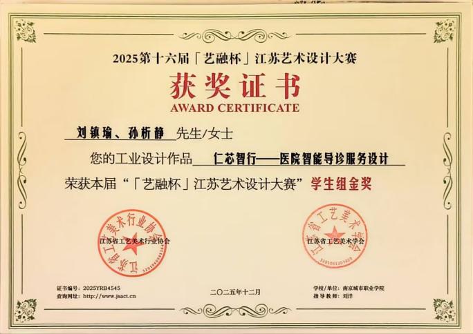刘镇瑜、孙析静,《仁芯智行——医院智能导诊服务设计》,指导教师:刘洋,学生组金奖