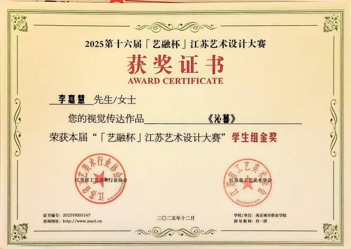 12月21日,由江苏省工艺美术行业协会、江苏省工艺美术学会主办的第十六届“艺融杯”江苏艺术设计大赛评选结果揭晓。本届大赛作为江苏省高等教育学会认定的省级重要学科竞赛,共吸引全省高校提交作品3598件,竞争异常激烈。我校数字文创学院师生团队凭借卓越的专业素养与创新设计能力,在众多参赛者中脱颖而出,斩获多项大奖。