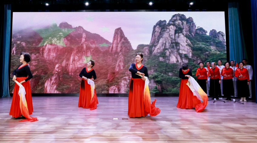 整场展演共22个精彩节目,全面展现了老年教育在艺术领域的丰硕成果。从热情奔放的拉丁舞串烧到典雅悠扬的古典舞《听香》,从雪域高原的《藏风美少年》到江南水乡的《苏州慢》,学员们用精湛的技艺和真挚的情感,展示了各具特色的艺术魅力。特别值得一提的是,由声乐高级二班带来的《我和我的祖国》,以歌伴舞的形式将全场气氛推向高潮,展现了老年学员们深厚的爱国情怀。
