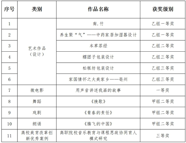 经过近一年的深入调研,不断挖掘校园里的各方面艺术人才,提前组建参赛队伍,系统性的指导与师生的共同努力,本年度在艺术类学生竞赛与展演方面,取得了历史性突破。在多个赛道取得了突破性成绩,获得了从省级到国家级的广泛认可。