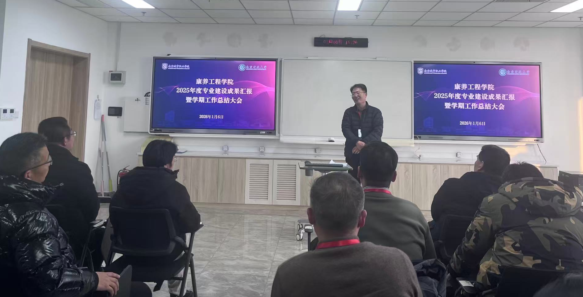 1月6日下午,康养工程学院在科创楼402室召开2025年度专业建设成果汇报暨学期工作总结大会,全面总结本学期工作,展示各专业年度建设成果,部署下一阶段工作安排。会议由吴良勤副院长主持,全体教职工参加会议。
