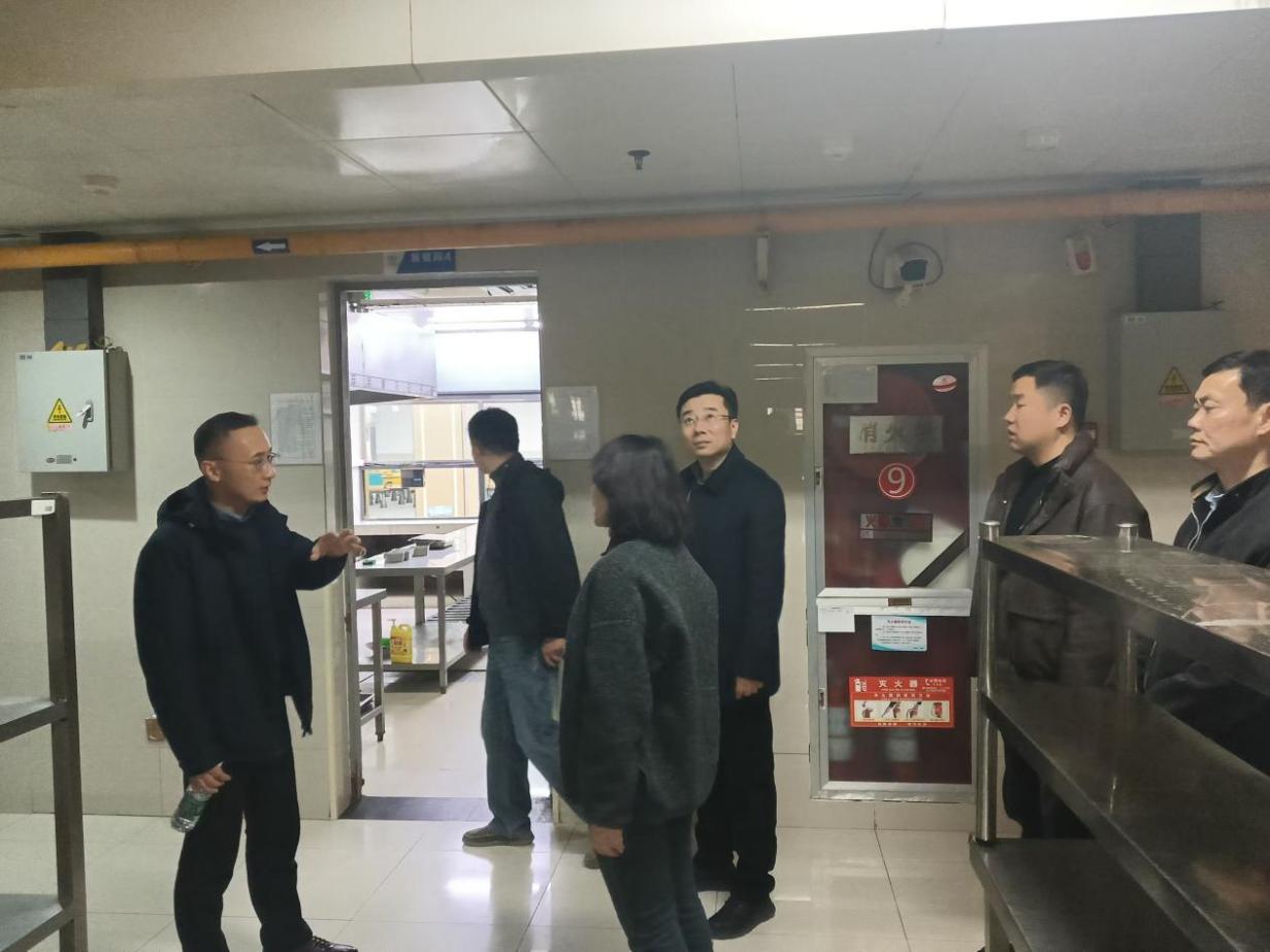 随后,检查组走访了各学院、部门办公室,逐栋排查办公区域用电安全、门窗锁具完好性及办公物品存放情况,要求各部门负责人切实落实安全工作责任制,离开办公场所前务必切断电源、锁好门窗,做好假期前各项安全排查工作。对学校食堂及学生宿舍的检查过程中,检查组重点检查了假前食材清库、剩余物资处置情况,核查燃气、水电关闭流程及后厨消杀保洁工作安排,要求相关服务单位严格落实放假前安全管控措施,明确假期值守要求,加强假期期间各类场地管控,做好设施设备巡检维护,杜绝安全隐患。