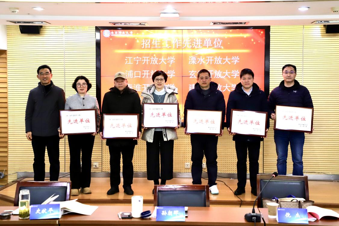 在办学经验分享环节,各发言单位分享了各自的特色亮点工作。浦口开放大学构建了“制度-过程-服务”三位一体的质量保障体系,社区教育着力打造“品牌惠民”。栖霞开放大学主动对接行业企业,积极探索“技能+学历”招生项目,其“善学栖霞”社区教育品牌获评国家级终身学习品牌项目。玄武开放大学坚持学历教育与社区教育并重,学历继续教育招生稳中有进,其区域社区教育实践模式入选教育部典型案例。会上,与会领导为2025年度系统工作突出贡献先进单位和先进个人颁奖。