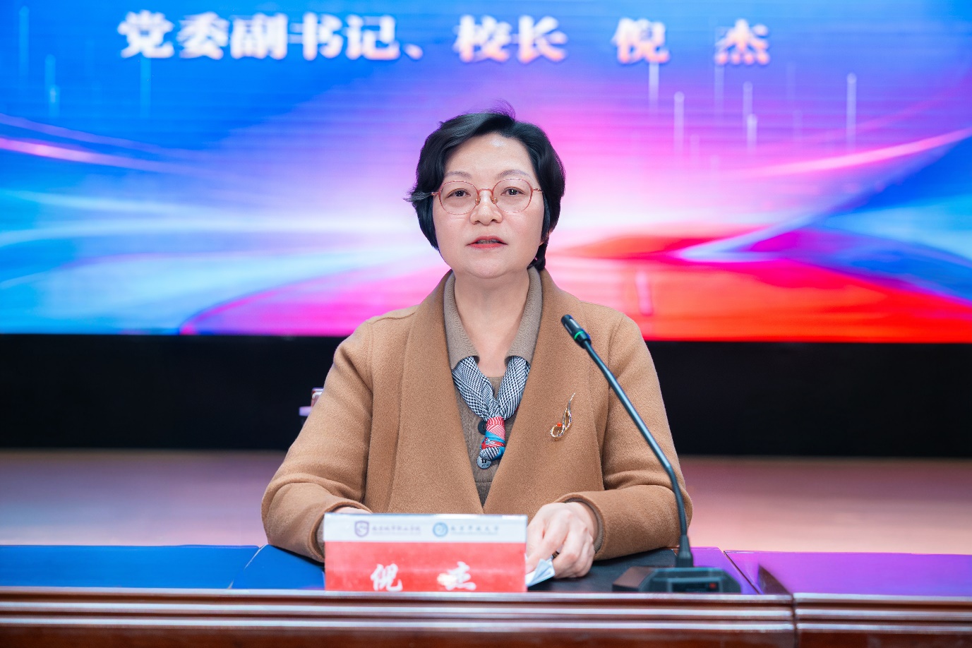 倪杰全面回顾了2025年学校工作,分析了当前形势,展望2026年工作。她指出,过去一年学校各项事业创造佳绩:产教融合实现新突破,专业群与区域产业匹配度持续提升,校企合作层次深化,技术服务与成果转化成效显著;终身教育服务能级实现新提升,学习平台用户稳步扩大,社区教育品牌影响力持续增强,为南京地方社会经济发展贡献力量;人才培养质量得到新验证,毕业生去向落实率保持高位,留宁发展比例稳步提升;高级别教学科研成果取得新进展,获批多项省级及以上重点教改和思政精品项目。