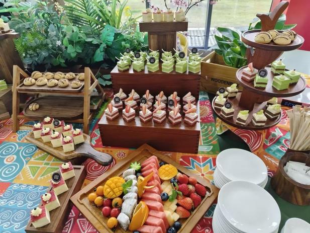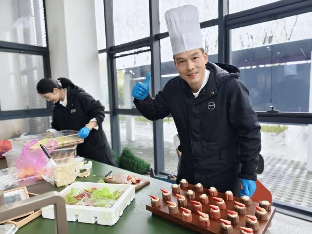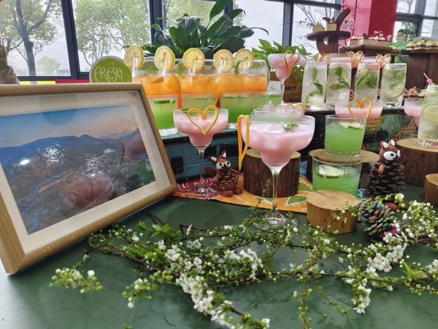 下午12时20分,裸心岭度假村团队抵达校园,在教1一楼公共区域精心布置茶歇展台。康养工程学院营养配餐、旅游管理、健康管理等专业师生纷纷到场观摩品鉴,近距离感受度假村的服务理念与品牌特色,现场交流氛围轻松融洽。