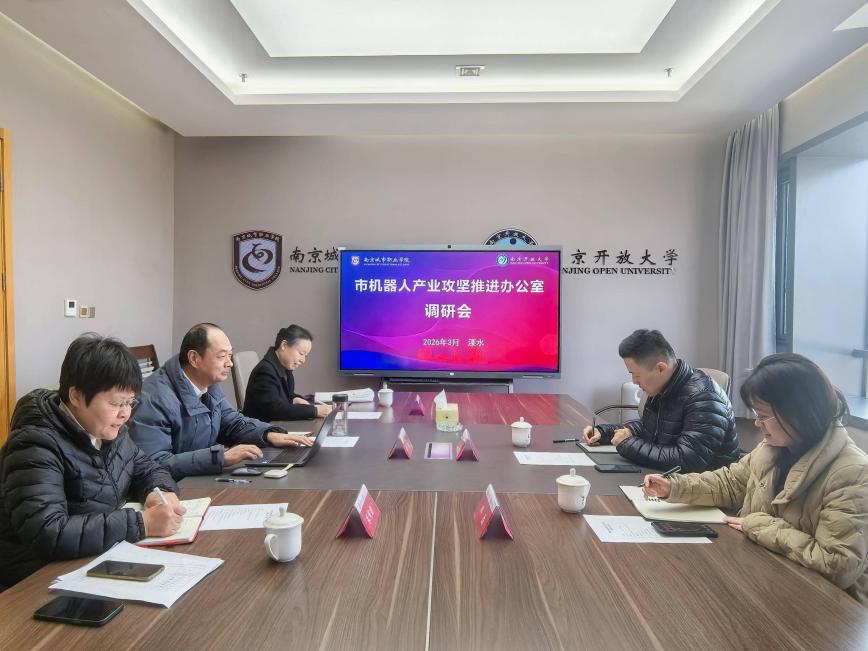 3月10日上午,南京市机器人产业攻坚推进办公室(简称“攻坚办”)就具身智能产业人才培养来校调研。南京市科技局科技人才处副处长王韫江、南京工艺装备制造股份有限公司总师办副主任邵磊代表“攻坚办”参加交流。我校教务处处长刘红、科研处处长朱寅非、智能工程学院院长力志热情接待。