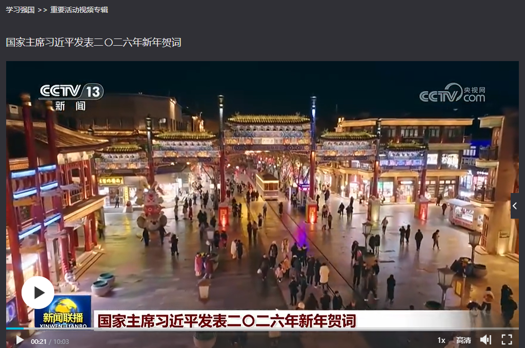 学习会上,党总支宣传委员高洋和大家共同观看了习近平主席二〇二六年新年贺词视频,并重点解读了贺词中的金句: